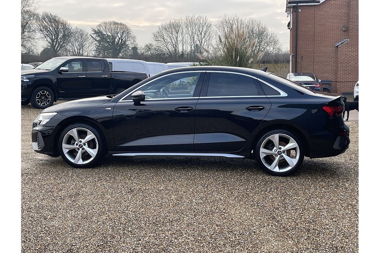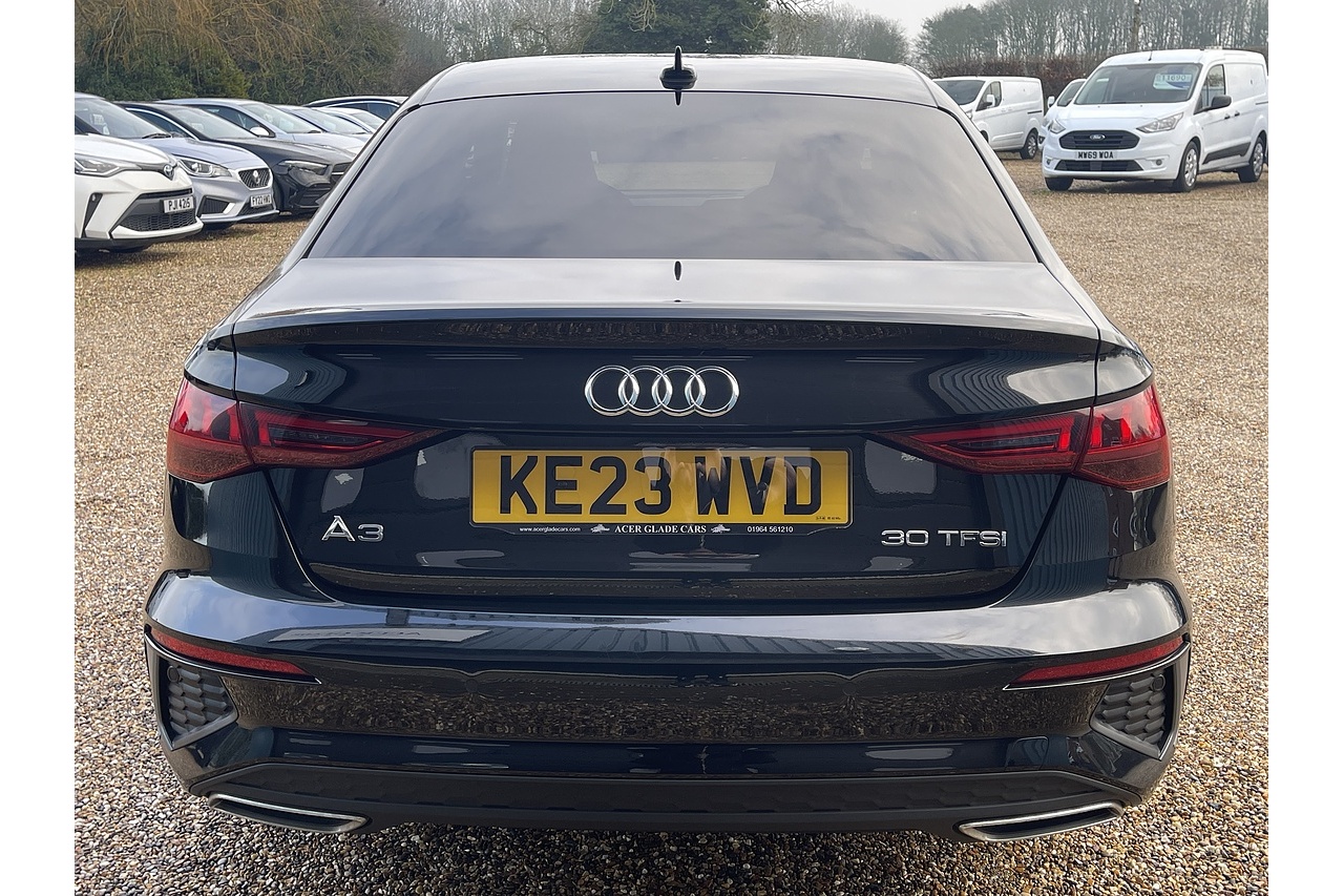 Audi A3 1.0 TFSI 30 S line Saloon 4dr Petrol S Tronic Euro 6 (s/s) (110 ps) 2023 with 29,257 miles in Black, 1 Owner, Full service history.