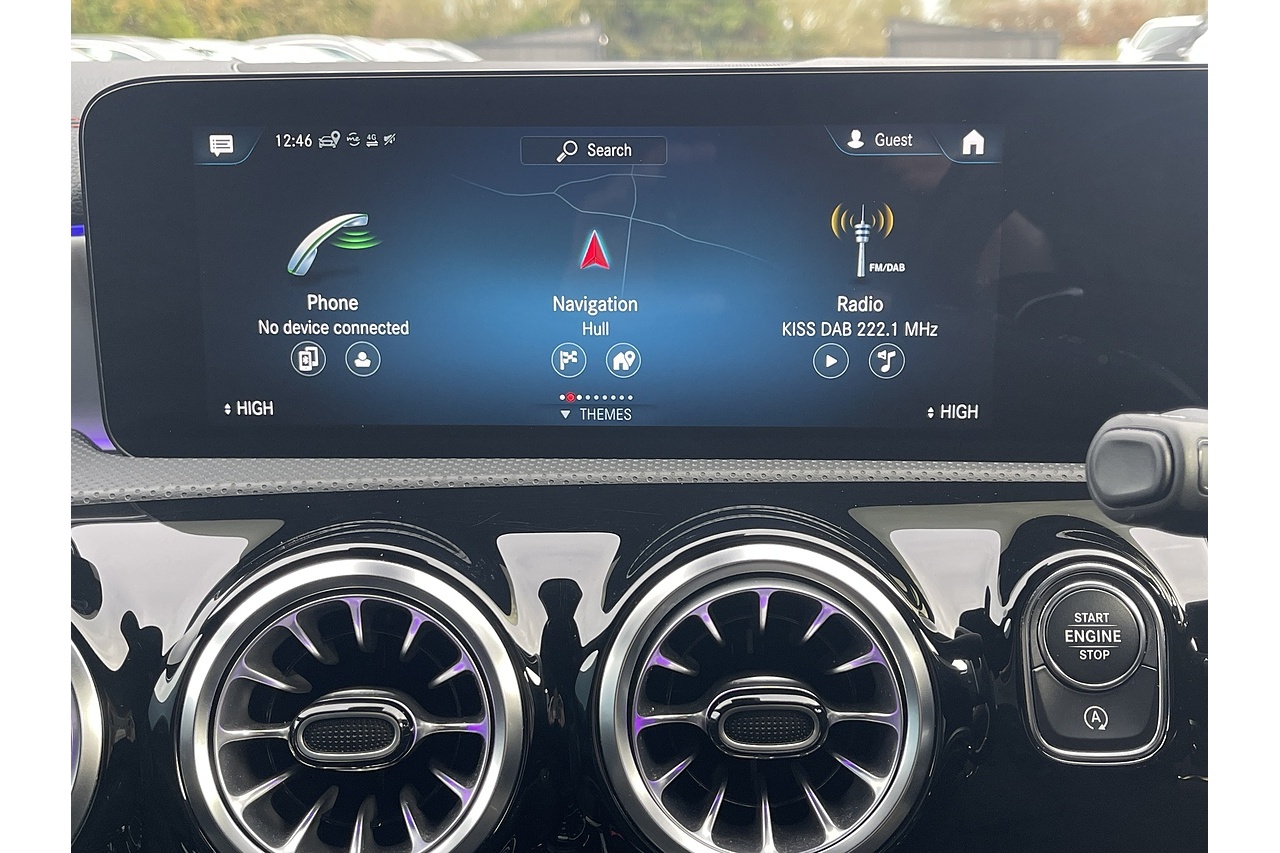 This 2023 Mercedes-Benz CLA200 AMG Line (Executive) boasts a full service history and has had only one owner from new, ensuring excellent provenance. This stylish saloon features a 1.3 litre petrol engine and meets Euro 6 emissions standards. The AMG Line trim enhances its sporty appeal. Inside, you'll find a host of convenient features including smartphone integration with Apple CarPlay and Android Auto, dual Bluetooth interfaces, and THERMOTRONIC luxury automatic climate control for personalised comfort. The Mercedes-Benz sound system delivers 100W through six speakers, and the parking package, complete with front and rear sensors and a rear camera, makes manoeuvring effortless.